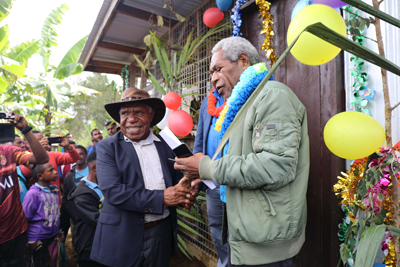 MRDC Kini Renagi and William Baratia with PRM Chairman Pape Punga at Homa during the relief operations.