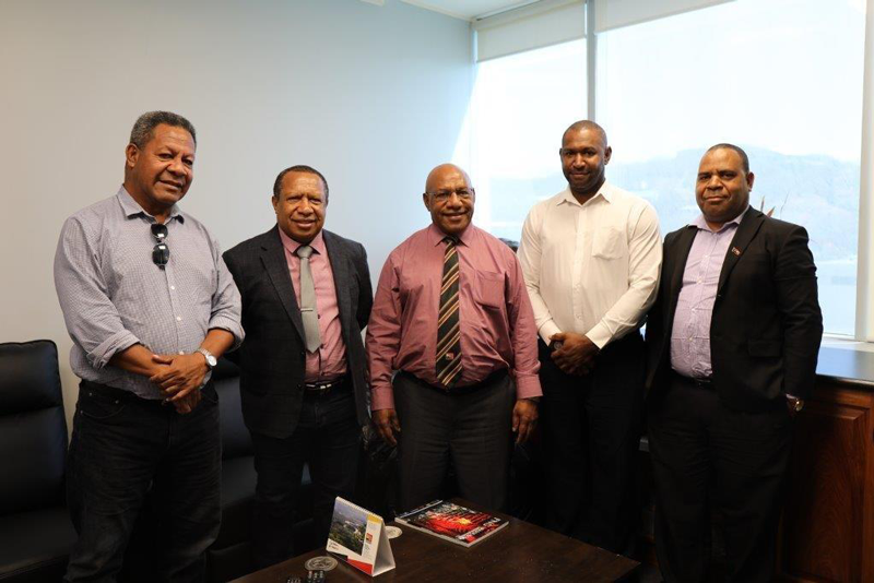 Governor for Central Robert Agorabe (2nd from left) meeting part of the management team during a visit to MRDC after being elected. Left is GRPNGLNGPL director Solo Damena.